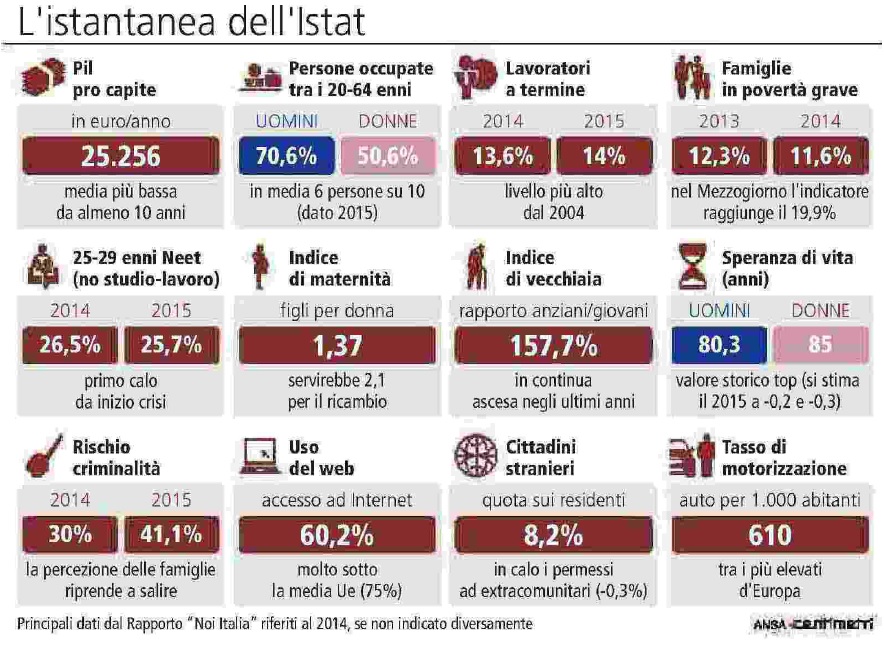 Lo scenario è chiaro, usi e costumi al giorno d’oggi portano l’Italia a fare un qualche passo avanti sul piano sociale e culturale ma restiamo al palo per assenza di lavoro e reddito.